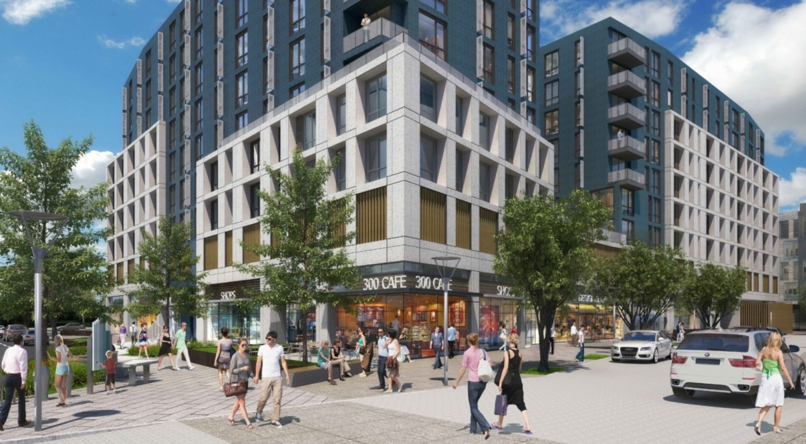 The Exchange is a transit-oriented development on a prominent corner of Salt Lake City’s civic mall. Consisting of two buildings on a 2.2-acre site along the TRAX light rail system, the project will house 412 residential units, 14,000 square feet of street-front retail space, and The Shop co-working space.